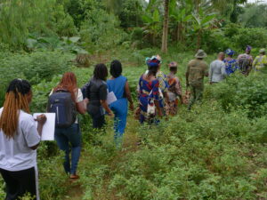 C’est à travers une marche dans les quatre coins (nord, sud, est et ouest) du village de Lindja-Dangbo après une séance d’échange autour de deux thématique à savoir : « Forêt sacrées du Bénin et contraintes actuelles des modes de gestion des ressources naturelles » et Gouvernance forestière et développement local au Bénin a fait découvrir à ces communautés autochtones, les richesses naturelles qui les entourent, formant l’écosystème autour d’elles et qu’elles doivent forcément contribuer à sauvegarder sans condition. Une cartographie de ces richesses a été réalisée afin de faciliter leur conservation et de penser le future de la communauté.